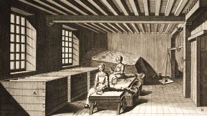 Hacia 1815, la Police Générale des Ateliers publicó un cartel en el que se establecían las normas para el funcionamiento de las empresas papeleras. Con base en las reglas publicadas, la fabricación de papel estaba muy regulada en París en ese momento, reflejando en cierta medida su importancia estratégica. Entre otras normas dictadas cualquier trabajador que provocara cualquier tipo de organización laboral, sería despedido inmediatamente, denunciado a las autoridades y a otros fabricantes de papel. El artículo 4 fijaba los salarios de los papeleros masculinos en 2 francos diarios, mientras que a las mujeres se les pagaba menos de la mitad (80 céntimos). La jornada laboral se fijó en 10 horas diarias para hombres y mujeres.
