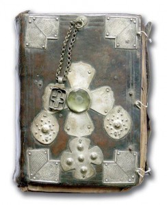 Las cubiertas de metal mas antiguas de occidente fueron presentadas a la Basílica de San Juan Bautista en Monza por la reina lombarda Theodolinda. Al igual que las cubiertas orientales no se sabe qué podrían haber contenido. "Hasta la época carolingia no se pueden conectar las cubiertas de las encuadernaciones con los códices originales e incluso entonces, son pocos los ejemplos claros" (Needham, Twelve Centuries of Bookbindings 400-1600 [1979]