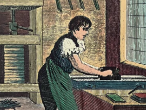 En 1568 el artista e ilustrador de libros Jost Amman y el poeta Hans Sachs publican Eygentliche Beschreibung aller Stände auff Erden, hoher und nidriger, geistlicher und weltlicher, aller Künsten, Handwercken und Händeln una serie de ilustraciones de oficios del libro (papelero, impresor y encuadernador) con explicaciones en verso.